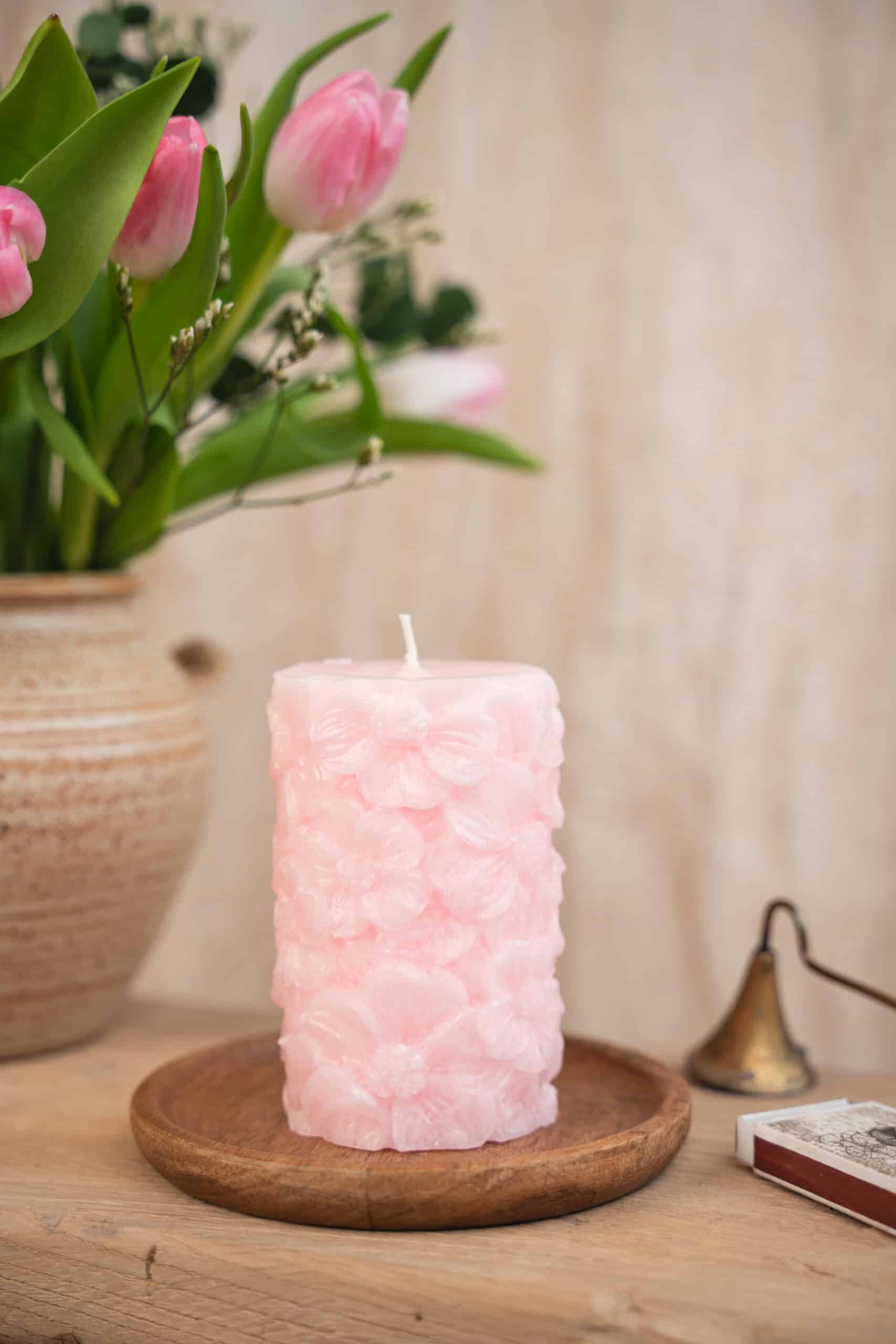 Scented candle with floral pattern