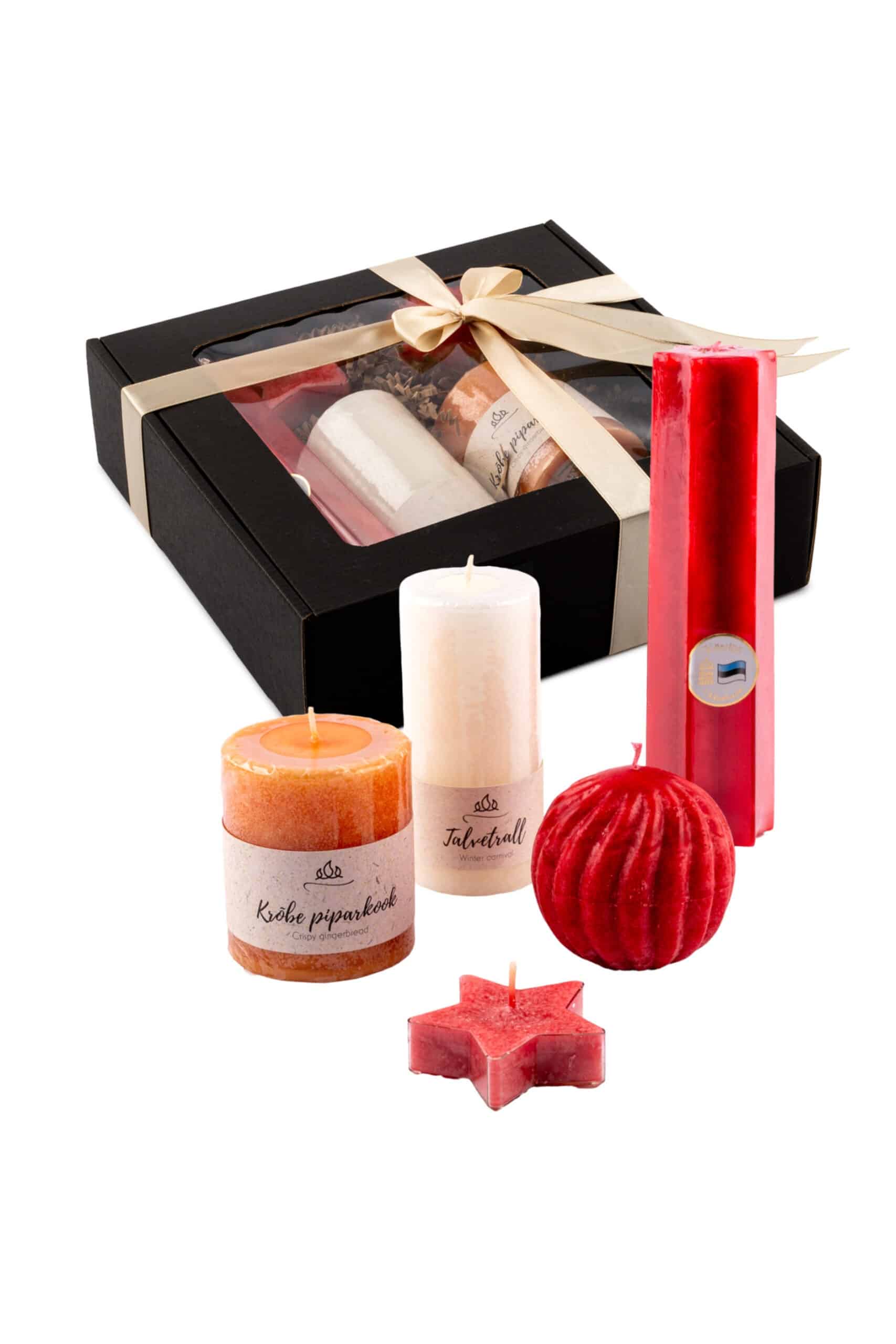 Seda kinkekomplekti avades täitub tuba kõigi nende vürtsidega, mis loovad meie koju pühademeeleolu. Kaunis punane, valge ja piparkoogi pruun, erinevad vormid, aitavad teha ruumi mõnusalt hubaseks. Küünlad on pakendatud musta värvi elegantsesse aknaga kinkekarpi, millele on ümber seotud värviline lipsuga pael.