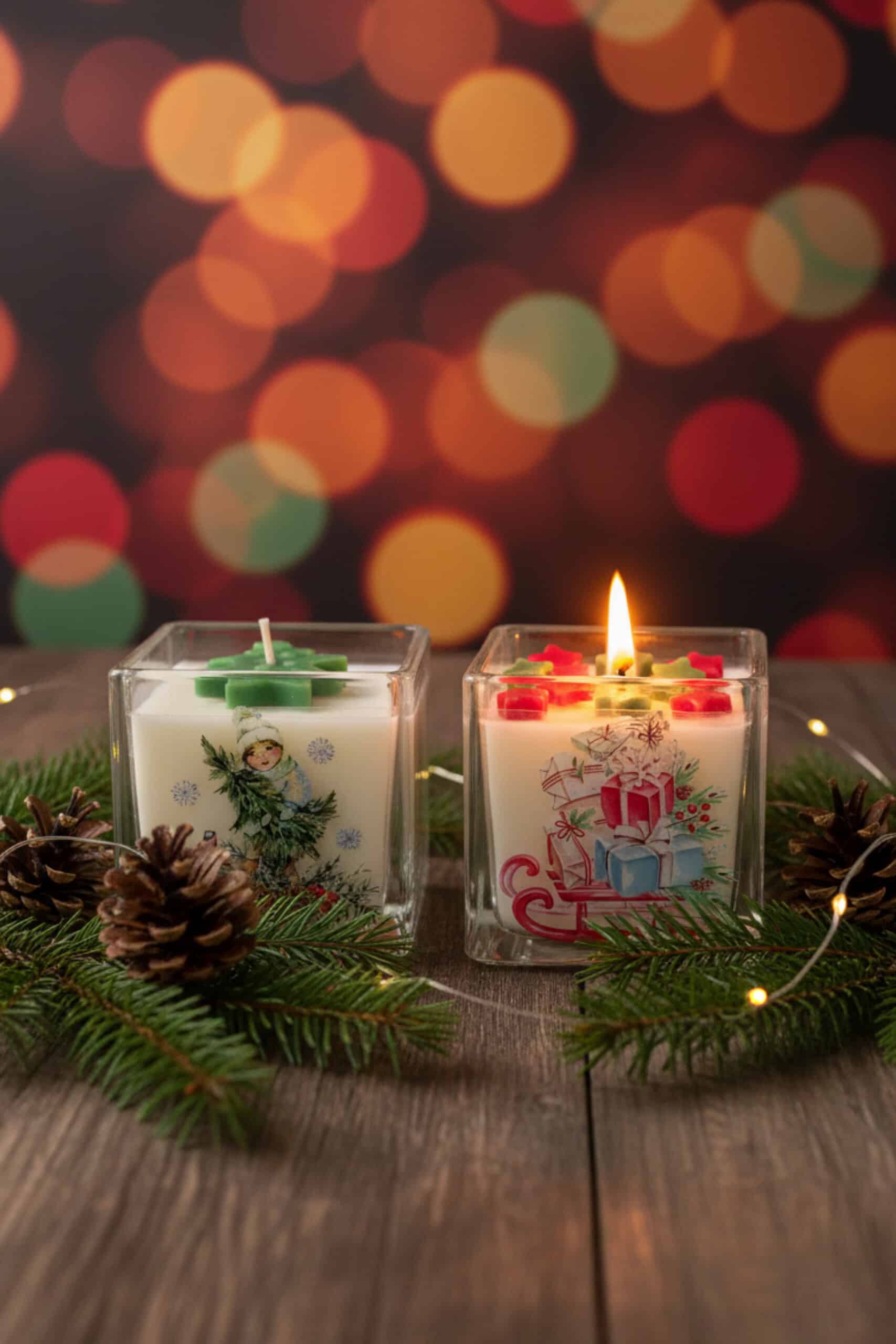 Efektne ja kandilises klaasis rapsivahast aroomiküünal meie kahe populaarsema uue aroomiga - "Lumine küpress" ja "Särtsakas jõhvikas".