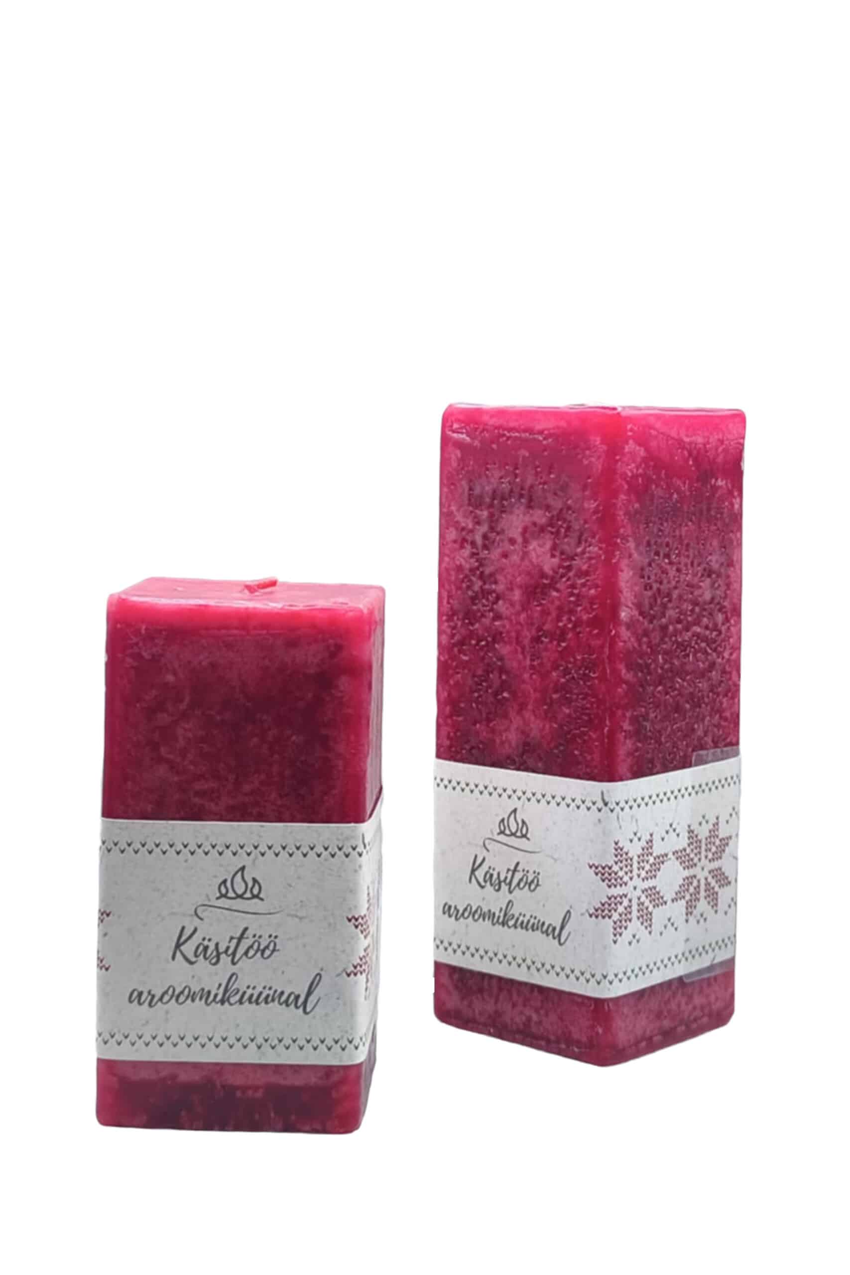 Läbivärvitud, käsitsi valatud lõhnaküünal, tumepunane.